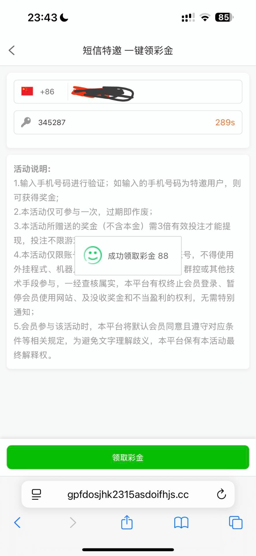 特邀碰瓷,活动里自助领取88,和那个hh03一样