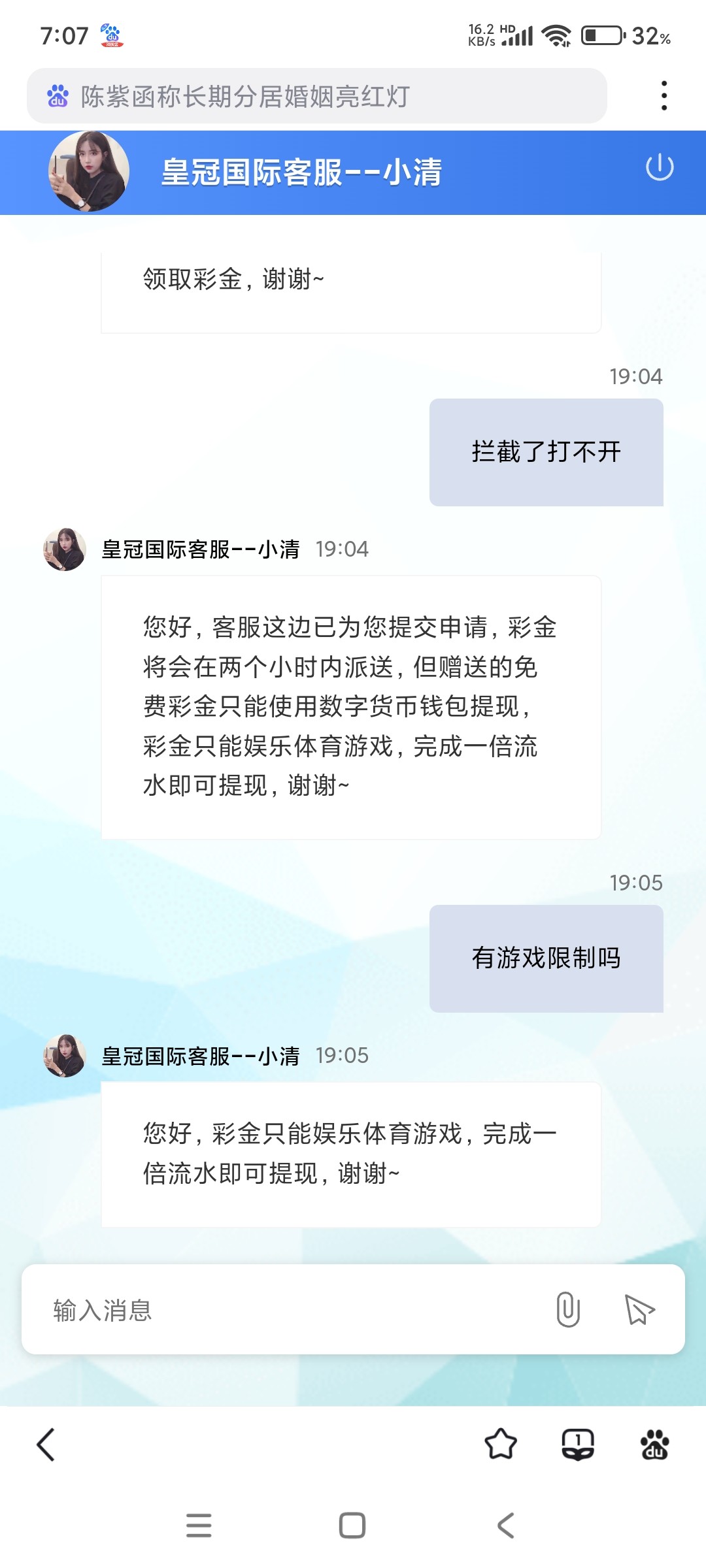特邀碰瓷,找客服申请电话彩金,只能玩体育